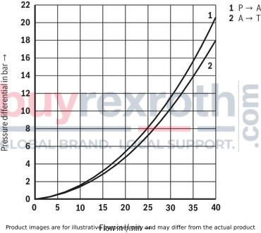 Seat valves have a negative spool overlap, i.e. leakage oil occurs during the switching process. However, this process takes place within such a short time that it is irrelevant in nearly all cases of use. The indicated maximum flow must not be exceeded (if applicable, use a throttle insert for flow limitation, see functional description)!Plus-1 plate: