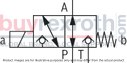 3/2 directional valve (symbol "UK") in connection with Plus-1 plate: pP ≥ pA ≥ pB ≥ pT |