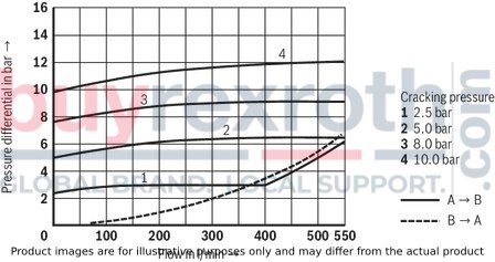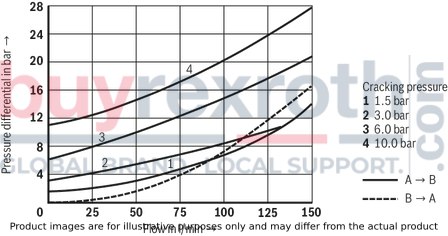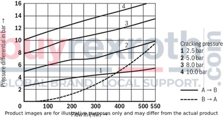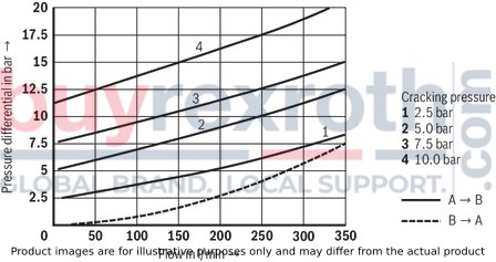 The seat valve can be flown through from A to B without external pilot pressure. In the opposite direction, the seat valve closes hydraulically tight.