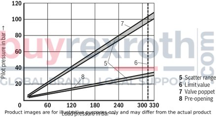 Version "A”: The two-stage set-up with an increased control open ratio means even low pilot pressure can be unloaded securely. Avoidance of switching shocks due to dampened decompression of the pressure volume on the actuator side. Version "B”: In case of valves without pre-opening, the included pressure volume may be unloaded suddenly. Resulting switching shocks may lead to premature wear on installed components, as well as noise formation.Type SL..PB.-4X/... (with pilot oil return, without pre-opening)