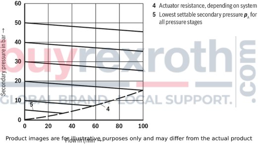 The DR 10 K5-3X/100YM features a poppet type spool that allows hydraulic fluid to flow unrestricted from port A to B in its normal position. It maintains secondary pressure through an adjustable spring mechanism; this pressure setting is achieved via the sleeve with hexagon and protective cap adjustment option. The valve's operation involves the main spool and pilot poppet, which work together to regulate the pressure by releasing excess fluid through the nozzle system when the set value is exceeded.