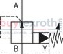 The DR 20 K4-1X/315YM valve is constructed with NBR sealing material and utilizes internal pilot oil supply with an external pilot oil return. It has been engineered to maintain a consistent outlet pressure that is regulated by an adjustable spring, which can be set via various adjustment options including a rotary knob or a lockable rotary knob with scale. The unit's design includes ports conforming to ISO standards for subplate mounting, which may also accommodate an optional check valve for free return flow.