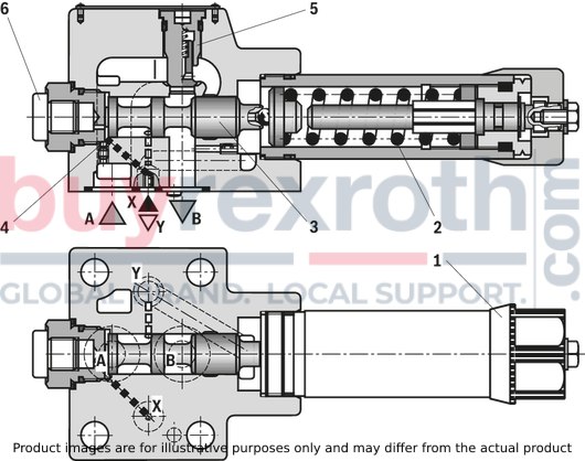The Bosch Rexroth DZ10DP1-4X/75Y (R900502152) is a direct operated pressure sequence valve designed for the pressure-dependent connection of secondary systems. This valve's functionality is based on its ability to open the connection from channel A to B once the pressure in channel A exceeds the threshold set by the compression spring, thereby allowing the secondary system connected to channel B to operate without a pressure drop in channel A. The control signal for this process can be sourced either internally from channel A or externally via port X.