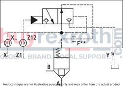 The 2-way cartridge valves can be passed from A to B or from B to A. Pressurization of area A3 by pilot oil discharge from channel B or external pilot oil supply, channel A is blocked without leakage.