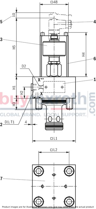 By means of control cover (2), the bore of the cartridge elements is closed. They also serve as connection element between cartridge valve and pilot control valve.