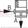 The effective pressure at port A is directed via an orifice to the spring side of the spool which remains open under set conditions allowing free flow from port B to A. Upon reaching the set pressure, the spool closes, reducing the pressure at port A according to its characteristics. The valve's seals are made from NBR material suitable for hydraulic fluids such as HL, HLP, HLPD, HVLP, HVLPD, and HFC.