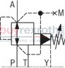 In its default state, the valve allows unrestricted fluid flow, while simultaneously applying pressure through specific channels to balance against a compression spring. This balance is key to maintaining the set pressure level. When the downstream pressure in channel A exceeds the set value, the control spool shifts to restrict flow until equilibrium is reestablished.
