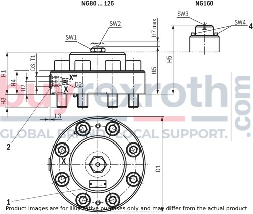 Component series 20 ... 29 (20 ... 29: unchanged installation and connection dimensions) (NG125 … 160) |