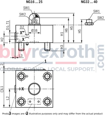 Up to NG32, control cover "H" can also be combined with pressure logic inserts type LC..DB..7X. From NG40, special covers type LFA...H.../FDR can be used (see cartridge valve type LC "Information").