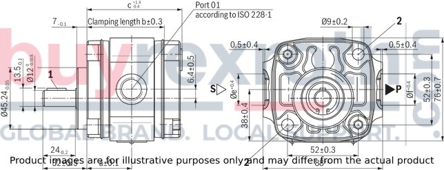 The direction of rotation for the PGF2-2X/013RJ20VU2 is clockwise, without through drive capability. Its weight reflects the robust construction suitable for demanding environments. This model's design ensures low operational noise and reduced flow pulsation while maintaining high efficiency even at low viscosities due to sealing gap compensation. Additionally, it offers long service life thanks to plain bearings and sealing gap compensation.