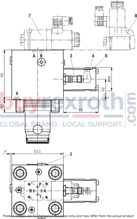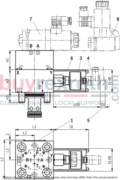 Directional seat valve (pilot control valve) separate order NG40 and 50: Type M-3SEW 6 … NG63: Type M-3SEW 10 … |