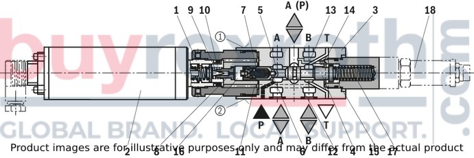 This Bosch Rexroth valve functions by setting the reduced pressure in channel A via the DC motor based on the command value. It ensures that the pressure in port A remains consistent with the set pressure at the pilot control valve. Additionally, if there are any instances where the supply voltage fails or an error message is sent by the control electronics, the self-locking DC motor will maintain the pressure adjustment.