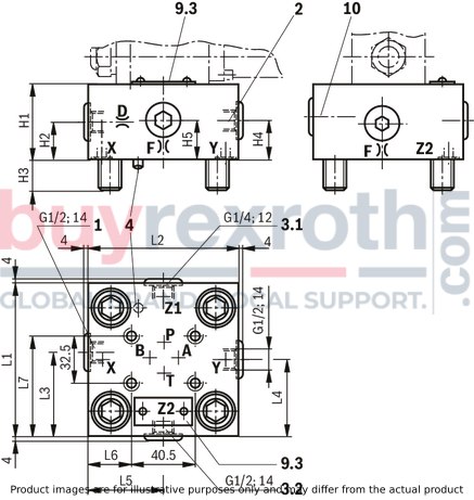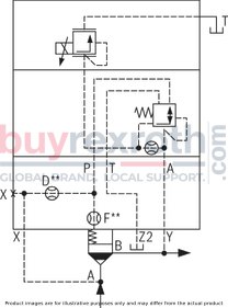 Any potential increases in secondary side pressure are efficiently discharged to the tank through the third way of the pilot control valve. Moreover, an additional blocking function can be achieved by setting up a directional valve type LFA..DRW.... The Bosch Rexroth LFA40DREV-7X/006D15/12 is part of component series X and represents state-of-the-art hydraulic engineering suitable for diverse applications requiring precise pressure modulation and reduction capabilities.