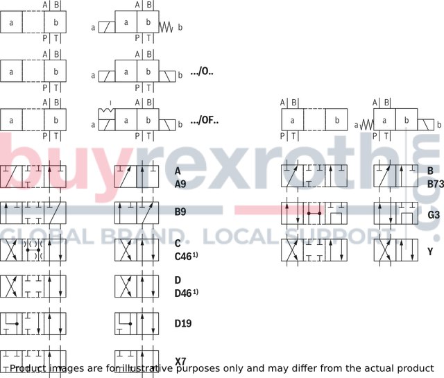 With spring return "OF"(impulse spool, only possible with symbols A, C and D)