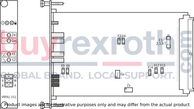 The position transducer electronics consist of an oscillator [14] with downstream driver [15] for controlling the inductive position transducer and a demodulator [16] for analyzing the position transducer signal (actual value). The oscillator frequency is approx. 2.5 kHz. The inductive position transducer must be connected as throttle circuit with mid sensing. The position transducer electronics have been adjusted at the factory. Very long or capacitive position transducer lines may require readjustment of the zero point (via potentiometer "Zx"). The actual value (corresponds to the valve spool position) can be measured at the actual value measuring socket.