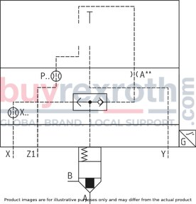The 2-way cartridge valves can be passed from A to B or from B to A. Pressurization of area A3 by pilot oil discharge from channel B or external pilot oil supply, channel A is blocked without leakage.