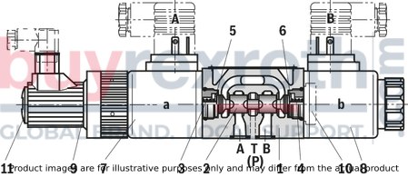This particular model has been engineered for reliable performance with a maximum operating pressure of 350 bar and a maximum flow rate of 75 l/min according to ISO standards. It features two spool positions: when deenergized, it defaults to its central position due to spring force; when energized, it shifts accordingly to adjust flow paths within the hydraulic system.