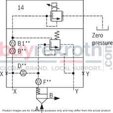 This Bosch Rexroth product ensures that the system maintains the set pressure through its carefully designed mechanism. When the set pressure is reached, the spool opens, limiting or reducing the pressure at port A as per the requirements of the hydraulic application.