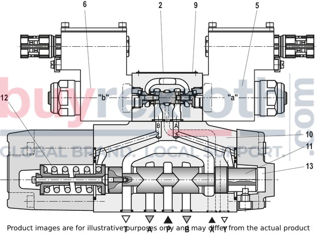 This model presents two spool positions and comes in versions DREPA and DREPB, each equipped with one solenoid (A or B), simplifying its operation. The main valve comprises a main control spool and centering spring, which are proportionally controlled by the pilot valve to manage flow direction and size.
