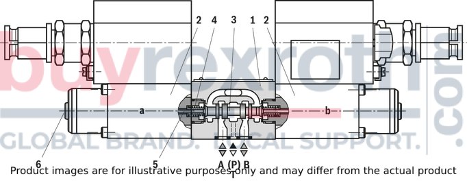 The 3WE6B9-6X/BG24NXDZ2/V valve is characterized by its ability to alternate between two spool positions without detent in its deenergized state. This means that there is no defined spool position when the solenoids are not powered. It also features an impulse spool version with detent for locking the spool positions, reducing the need for continuous solenoid energization.