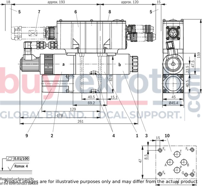 Machined valve contact surface; Porting pattern according to ISO 4401-05-04-0-05 |