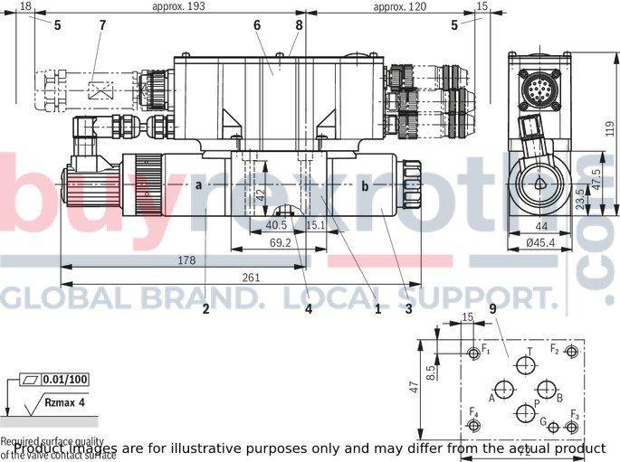 Machined valve contact surface; Porting pattern according to ISO 4401-03-02-0-05 (with locating hole) |