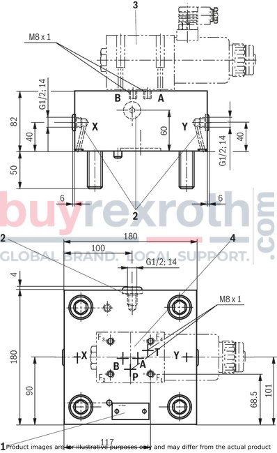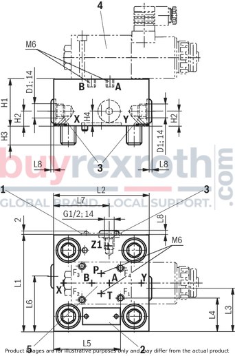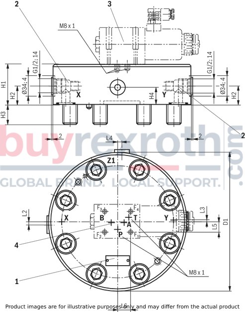 Porting pattern according to ISO 4401-05-04-0-05 (mounting thread for version "/12" see data sheet 08936) |