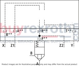 The 2-way cartridge valves can be passed from A to B or from B to A. Pressurization of area A3 by pilot oil discharge from channel B or external pilot oil supply, channel A is blocked without leakage.