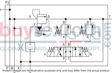 With its advanced design, this pump safety block corresponds to the functionality of Bosch Rexroth's DBA series but with enhanced features. The unloading of the main control spool is achieved through the actuation of the directional valve included in this unit. Additionally, this model facilitates zero-pressure startup and circulation at low pressures due to its proximity to the pump, resulting in low noise levels and quick pressure buildup.