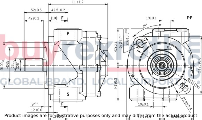 The gerotor pump features a geared shaft type T DP in accordance with ISO standards, providing robust performance and durability. The clockwise rotation of the pump allows for efficient fluid movement through cooling, filtration, or lubrication circuits. Its broad viscosity and speed range make it suitable for various industrial applications that require precise control over fluid dynamics.