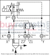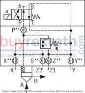 This product allows for the realization of different pressure functions by combining it with appropriate cartridge valves and control covers. Its pilot control valve can be adjusted manually or proportionally if electrically operated (not included). Additionally, the pilot oil supply can be external or internal, providing flexibility in system design.
