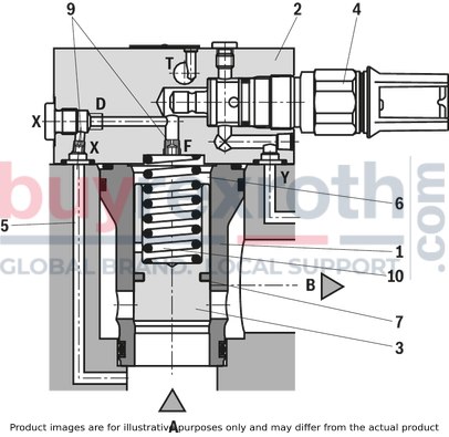 The Bosch Rexroth LFA40DB2-7X/110FE (R901363576) is a high-quality pressure relief valve designed for subplate mounting in hydraulic systems. This valve is part of the LFA series and is a pilot-operated, 3-way cartridge valve in seat design, ensuring reliable performance for controlling hydraulic flow and pressure. The model features manual pressure adjustment capabilities, allowing users to set the maximum pressure with precision. It has been Typeexamination tested and complies with the Pressure Equipment Directive EU, signifying its adherence to stringent safety standards. This specific model comes with a hexagon type control cover which facilitates easy manual adjustments of the maximum pressure. It can handle a maximum operating pressure of up to 350 bar and offers various response pressures within this range. The valve is suitable for a wide range of hydraulic fluids including HL, HLP, HLPD, HVLP, HVLPD, HETG, HEES, HEPG, HFDU, and HFDR types. The construction of this valve includes a factory nozzle fitting and an installed compression spring that must remain unaltered to maintain the integrity of the device. The LFA40DB2-7X/110FE ensures operational safety by preventing internal leakage from the spring chamber to port B through its robust piston sealing. For additional convenience and functionality, this model provides an optional rotary knob alongside the standard hexagon adjustment type. This feature allows for quick manual reduction of pressure adjustment without affecting the set relief pressure setting—ideal for regular functional testing. The Bosch Rexroth LFA40DB2-7X/110FE valve is designed for easy installation with an installation bore according to ISO standard. Its size and component series are optimized for efficient operation with a maximum flow rate specified by the manufacturer's standards. This model ensures high performance in hydraulic applications where precise pressure limitation is critical.