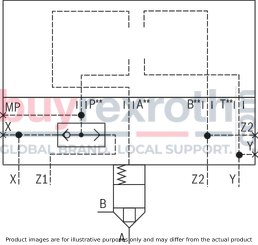The 2-way cartridge valves can be passed from A to B or from B to A. Pressurization of area A3 by pilot oil discharge from channel B or external pilot oil supply, channel A is blocked without leakage.