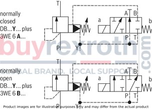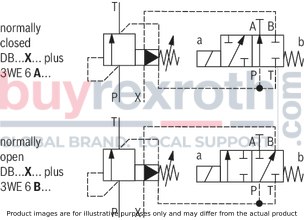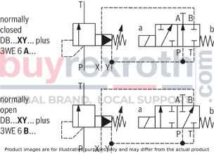 Additionally, an extra directional spool valve type WE can be attached for solenoid-actuated unloading capabilities. This feature enhances the functionality of the DB10-1-5X/200XCV valve by allowing it to be relieved or switched to alternate pressures when necessary.