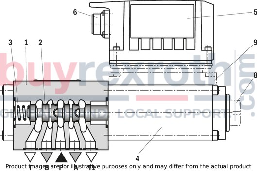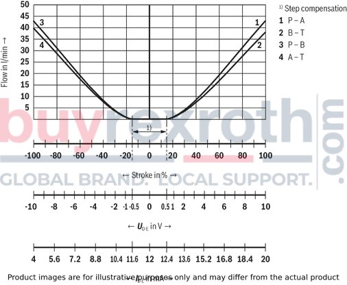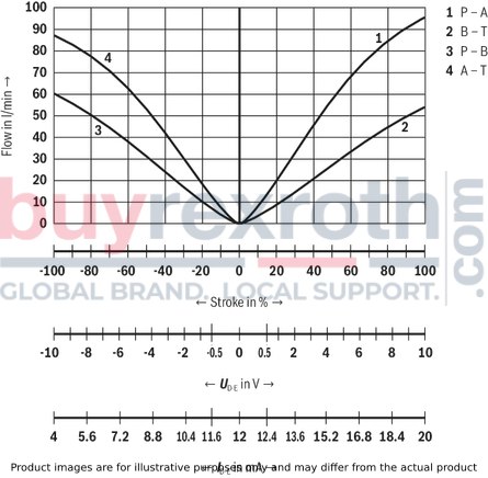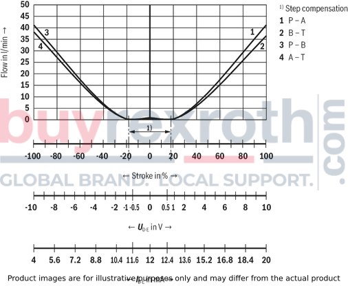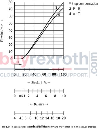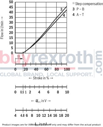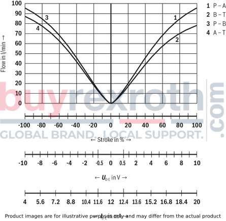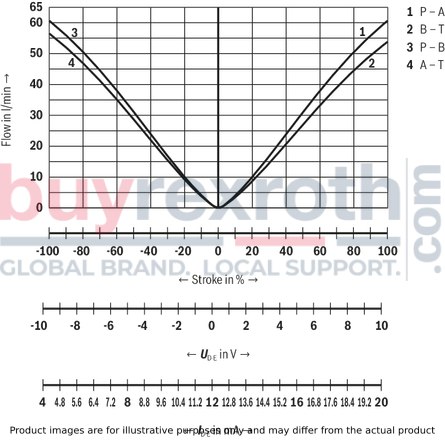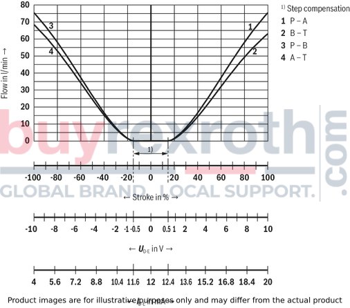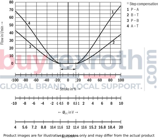 The 4WRPE10Q5-80S-3X/M/24A1's functionality is characterized by its integrated electronics OBE which monitors and compares the input command value to the actual position of the spool. Any deviations trigger the solenoid to adjust the spool accordingly, providing proportional control over the stroke/spool cross-section relative to the command value. The valve's error detection capabilities ensure that it de-energizes in case of supply voltage drops or minimum current command value falls, maintaining system safety and integrity.