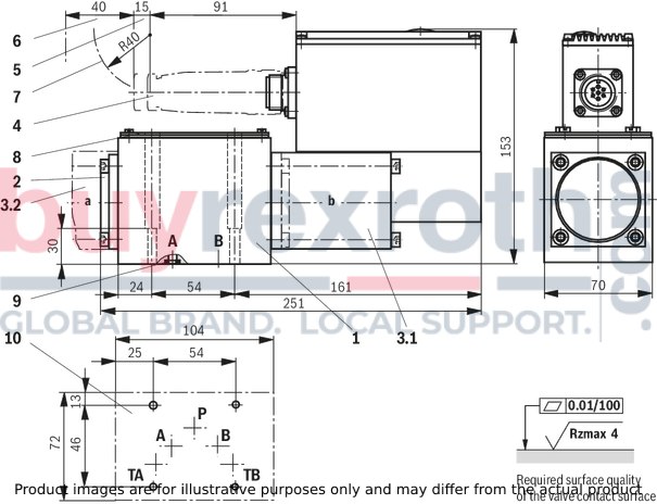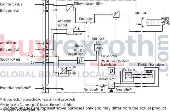 This model is equipped with failsafe functionality; when the solenoid is deenergized, the control spool is held in a failsafe position by compression springs, ensuring safety and reliability in system operations. The setup of the valve includes a housing with connection surface, control spool in sleeve with compression springs, solenoid and cover, position transducer, and integrated control electronics which can be adjusted at zero point via Pg nbsp.