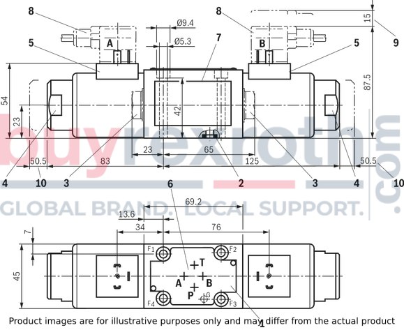 The Bosch Rexroth 4WE6Y6X/EG24N9XNK4 (R901419620) is a high-performance directional spool valve designed for controlling the start, stop, and direction of flow in hydraulic systems. This particular model features two solenoid-actuated spool positions without spring return, which means that in its deenergized state, the control spool does not have a defined basic position. It is equipped with wet-pin DC solenoids that actuate the control spool via a plunger, facilitating the necessary flow direction. The valve's solenoid coil is rotatable by 90 degrees and it offers an electrical connection as an individual connection.