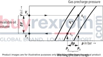 When the minimum operating pressure is reached, a small fluid volume (approx. 10% of the hydraulic accumulator's nominal volume) should remain between the bladder and the oil valve in order to prevent the bladder from hitting the valve during each expansion process.