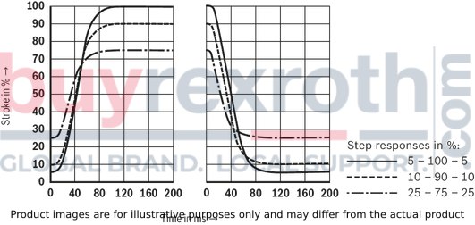 The electronics (integrated or external) compare the specified command value to the position actual value of the control spool of the main stage (2). In case of control deviations, the solenoid of the pilot control valve (3) is activated. In this way, the control spool is adjusted. Depending on the control deviation, the control chamber of the main stage (2) is either pressurized with pilot oil (the main stage closes) or unloaded (the main stage opens). Stroke and orifice cross-section are controlled proportionally to the command value until the control deviation is remedied.