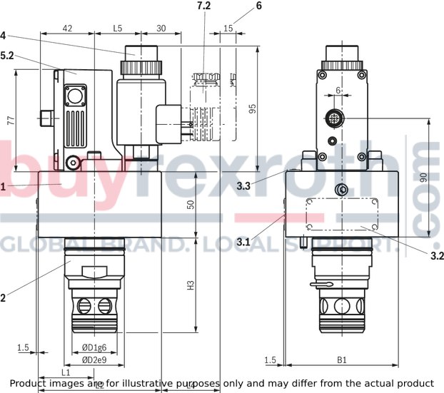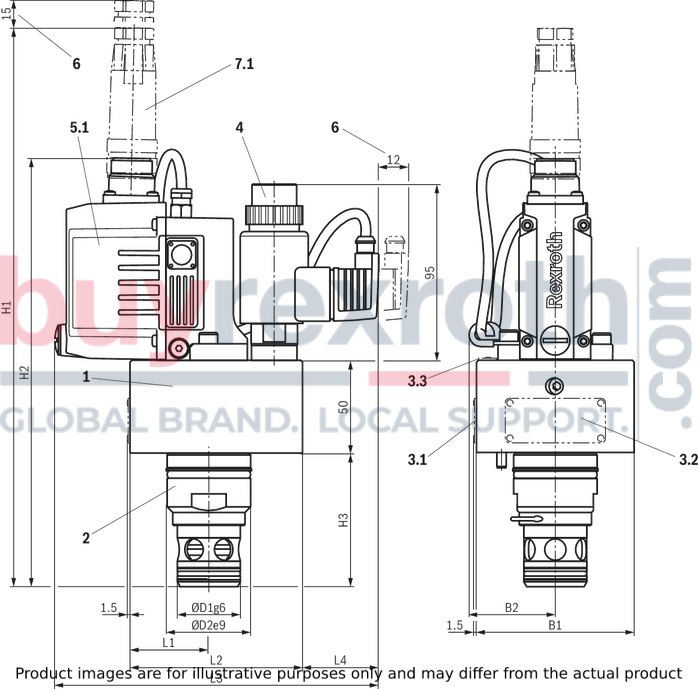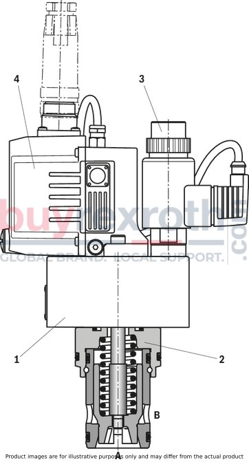 Cover (1) Main stage (2) Pilot control valve with proportional solenoid (3) Integrated electronics with position transducer and analog interface (4) or external control electronics as module amplifier