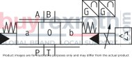 Symbol V and V1-:Pilot-operated 4/3 directional control valves are only functional in the active control loop and do not have a locking basic position when deactivated. Consequently "external isolator valves" are required in many applications and must be taken into account regarding the switch-on/switch-off order.