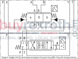 The pilot oil supply in the pilot control valve is either internal via port P or external via port X. The feedback can be internal via port T or external via port Y to the tank.