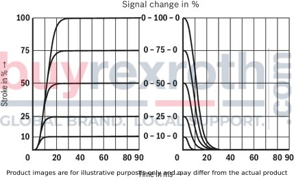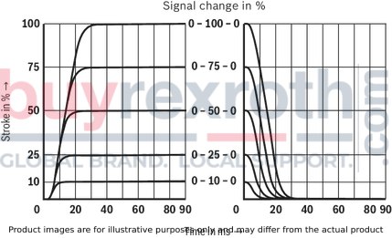 The tightening torque of the hexagon socket head cap screws refers to the maximum operating pressure. When replacing component series 3X with 4X, only the valve mounting screws listed here may be used. Prior to assembly, check the existing mounting bore on the block for sufficient screw-in depth.Transition function with stepped electric input signals