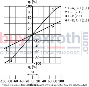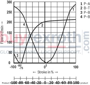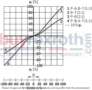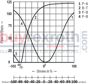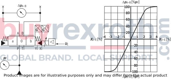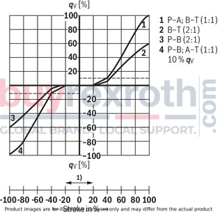 Pilot-operated 4/3-directional control valves with positive overlap are functional in controlled or regulated axes. The overlap in the de-energized state is approx. 20 % of the control spool stroke.