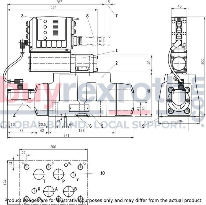 Machined valve contact surface; Porting pattern according to ISO 4401-10-09-0-05 |