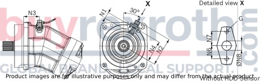 The versions A2FM...U and A2FM...F ("prepared for speed sensor", i.e. without sensor) are equipped with a toothed ring on the rotary group.