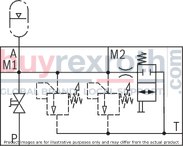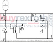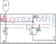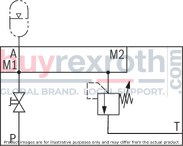 The system pressure increases by the counter pressure in the discharge line (port T) due to the increasing flow. (Observe the data sheet AD2000 A2, point 6.3!) To ensure that this increase in system pressure caused by the flow does not exceed the value of 10% of the set response pressure, the admissible flow has to be reduced dependent on the counter pressure in the discharge line (port T) (see diagrams/characteristic curves).