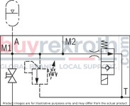 The connection between the accumulator shut-off block and the accumulator is realized by means of an accumulator adapter. An optional, additional, electrically operated 2-way valve (normally open) enables automatic unloading of the accumulator in case of shutdown or "emergency off function". The accumulator is protected from inadmissible overpressure by means of the pressure relief valve.
