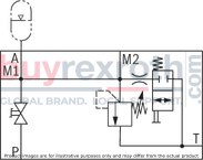 The response pressure specified in the component marking is set in the plant. The maximum admissible flow stated in the component marking applies for applications without counter pressure in the discharge line (port T). By removing the lead seal at the safety valve, the approval according to the Pressure Equipment Directive becomes void! The requirements of the Pressure Equipment Directive and of data sheet AD2000 A2 must be generally observed! It is recommended to secure type-examination tested safety valves against inadmissible removal from the screw-in housing/block by means of wiring and sealing with the housing/block (bore available in the adjustment element).