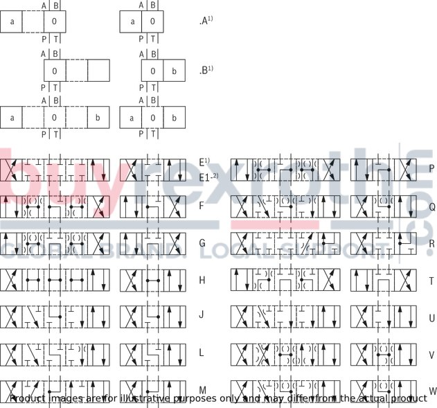 Example: – Symbol E with spool position "a" → ordering code ..EA.. – Symbol E with spool position “b” → ordering code ..EB.. |